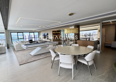 Com 360m² de área privativa, o imóvel oferece ambientes amplos, sofisticados e muito bem distribuídos. O living é composto por três ambientes integrados, proporcionando conforto, elegância e excelente iluminação natural, ideal para receber convidados e desfrutar de momentos em família.