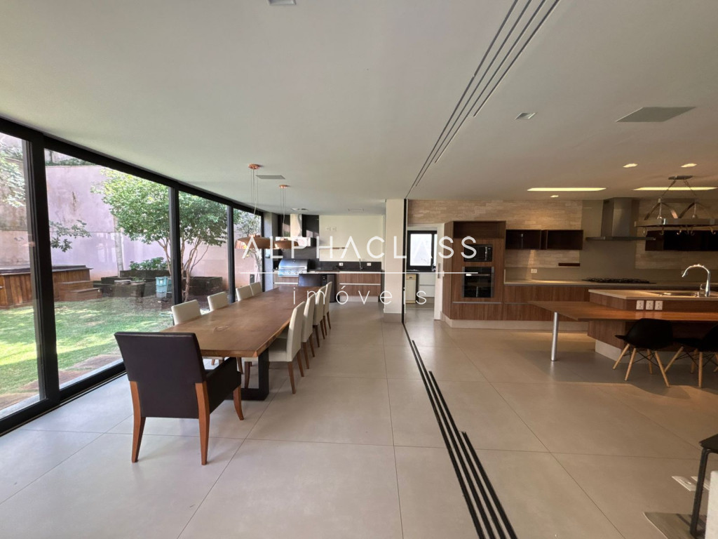 Entre os diferenciais, destacam-se sala de cinema / home theater, escritório, salão de festas, jacuzzi e jardim privativo com paisagismo. A cozinha principal é espaçosa e funcional, complementada por cozinha de apoio / serviço, oferecendo praticidade no dia a dia. O imóvel conta ainda com móveis planejados e excelente padrão de acabamento.