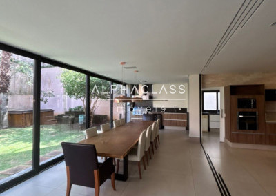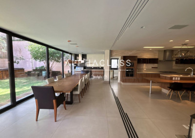 O living conta com espaços generosos e bem distribuídos, favorecendo a convivência e a iluminação natural. A residência dispõe de 4 suítes amplas, garantindo privacidade e comodidade, além de 5 banheiros no total.