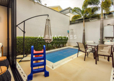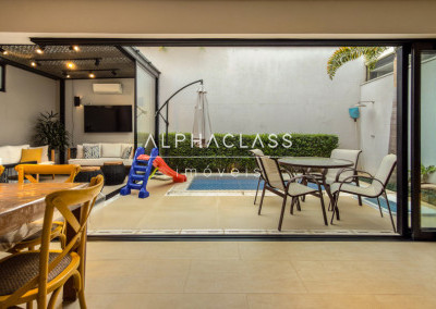 A área de lazer é composta por espaço gourmet integrado e piscina, ideal para momentos de descanso e confraternização.