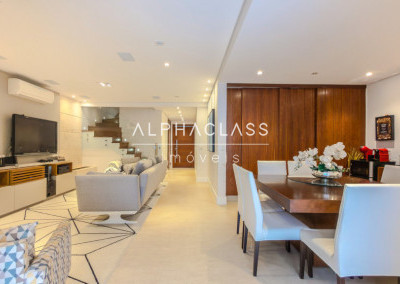 Dispõe de 3 livings integrados para 3 ambientes, com excelente iluminação natural e integração entre sala de estar, jantar e convivência. A área íntima conta com 4 dormitórios, sendo 2 suítes e 1 suíte americana, garantindo praticidade e privacidade.