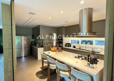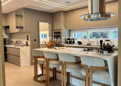 Casa para venda no condomínio Alpha Conde, em Alphaville, com 463m² de terreno e 651m² de área construída, destacando-se pelo alto padrão, amplitude e sofisticação.