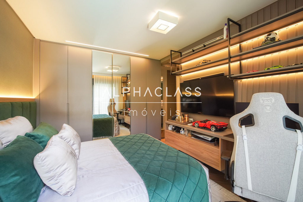 Na área íntima, dispõe de cinco suítes bem distribuídas, garantindo privacidade e comodidade para toda a família.