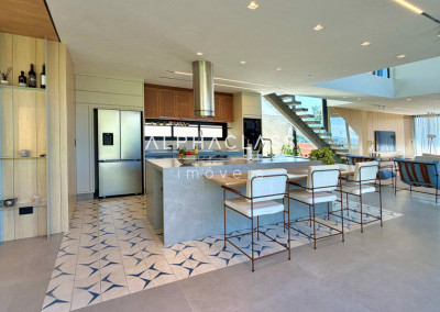 A cozinha possui ótimo layout, com fácil circulação e integração com os demais ambientes, além de área de serviço bem planejada.