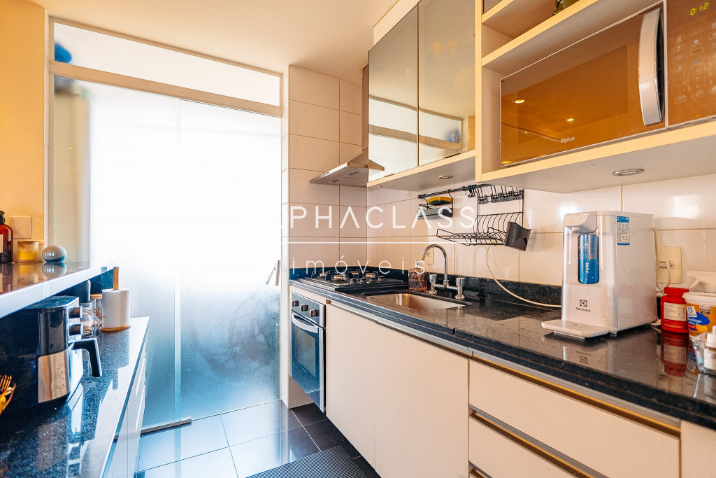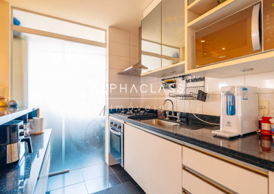 A cozinha possui layout prático, com fácil circulação e integração com a área de serviço.
