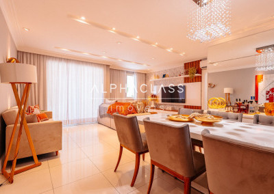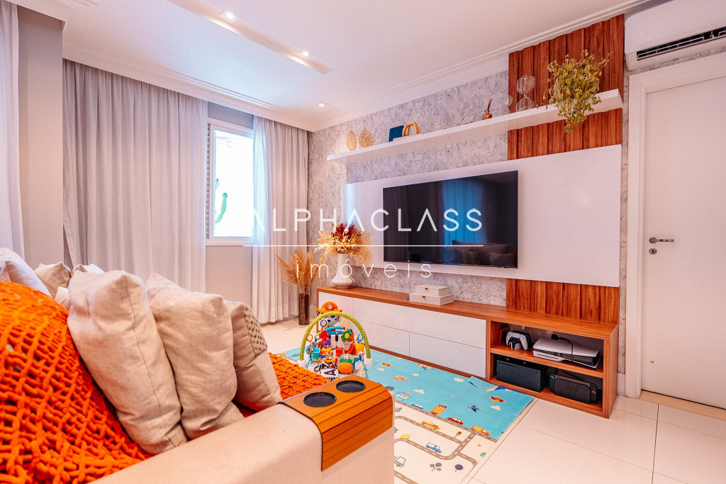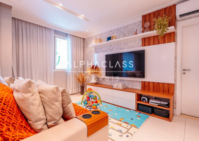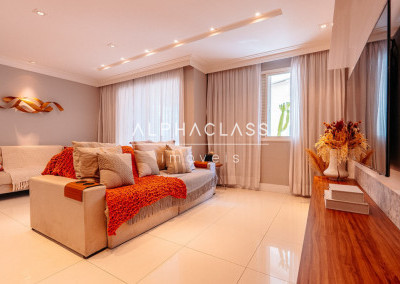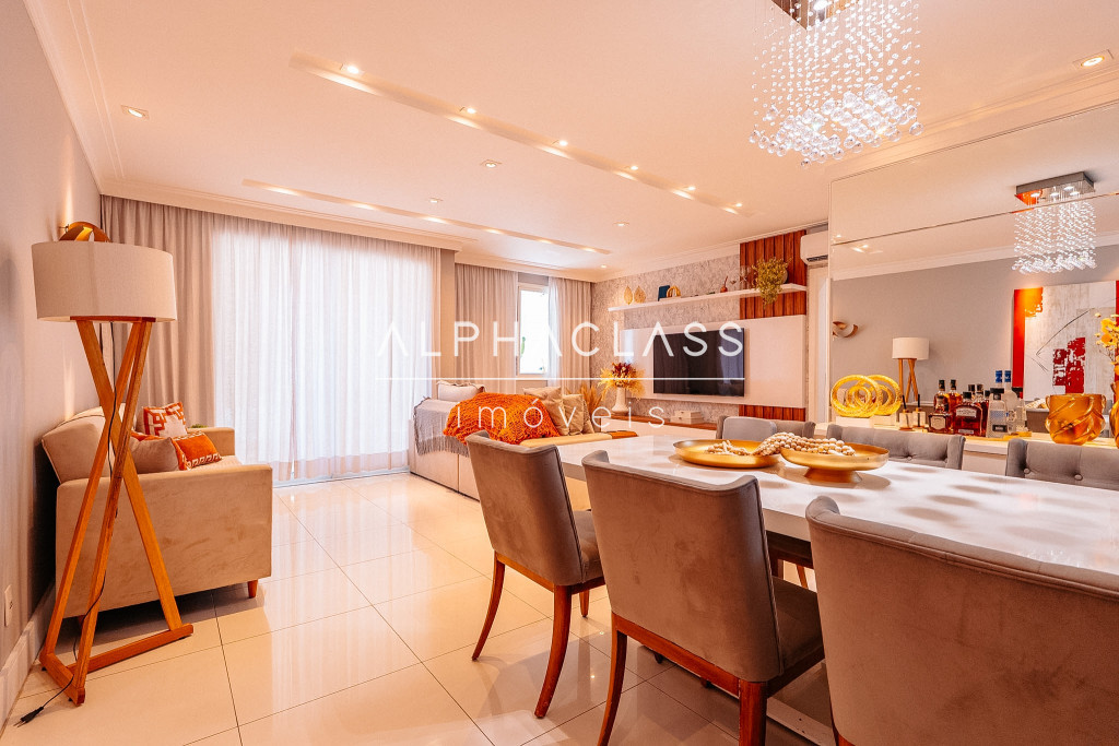 O imóvel conta com living para três ambientes, com integração entre sala de estar, jantar e convivência, proporcionando boa iluminação natural e um espaço agradável para o dia a dia.