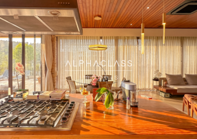 A casa é totalmente climatizada e equipada com eletrodomésticos Viking, reconhecidos pelo alto padrão e desempenho. Conta ainda com carregador para veículos elétricos, agregando tecnologia e sustentabilidade.