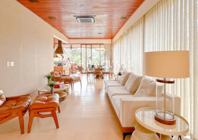 Com 522 m² de terreno e 511 m² de área construída, o imóvel apresenta um projeto contemporâneo, com excelente padrão de acabamento e ambientes amplos que privilegiam a integração e a luminosidade natural. Os três livings integrados para três ambientes criam uma atmosfera sofisticada e acolhedora, ideal para o convívio e para receber convidados.