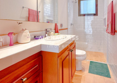 A residência conta com quatro suítes bem distribuídas, garantindo conforto e privacidade para toda a família.