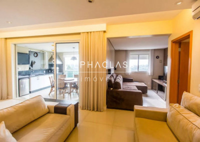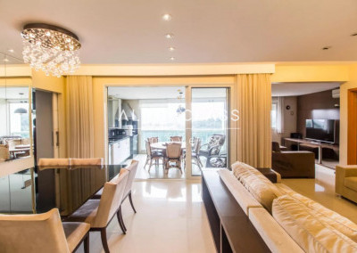 Com 156 m² de área privativa, o imóvel apresenta um projeto amplo e bem distribuído, com living para três ambientes integrados, proporcionando conforto, elegância e ótima iluminação natural, ideal para compor salas de estar, jantar e convivência.