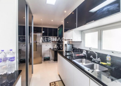 A cozinha é funcional e bem equipada, atendendo com eficiência às necessidades do dia a dia.