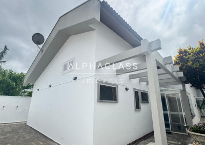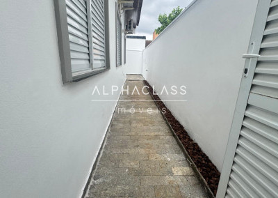 A residência possui entradas laterais, favorecendo ventilação e circulação. Não possui piscina.